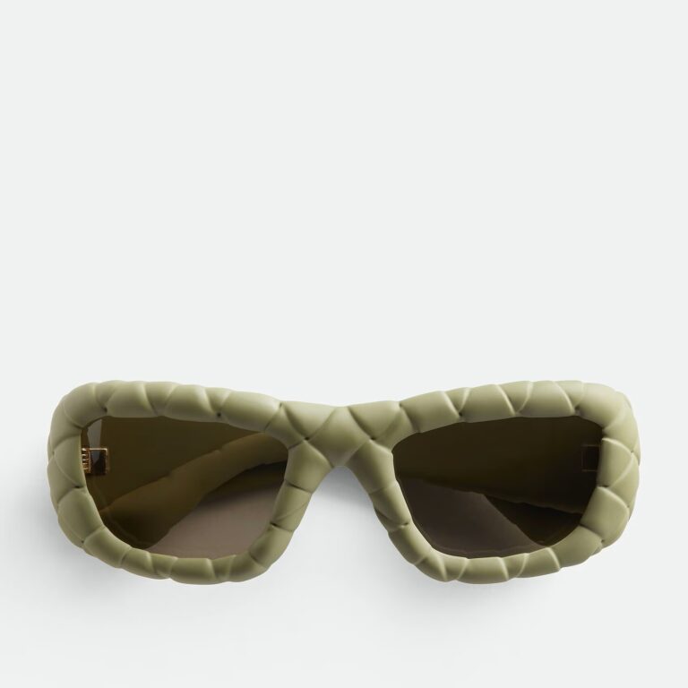 <p class="p1"><span class="s1">Occhiale da sole Bottega Veneta dalla forma rettangolare, montatura in acetato, colore verde con lenti grigie</span></p>