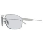 Occhiale vista/sole Balenciaga dalla forma rettangolare, montatura in metallo, colore argento satinato, lenti grigio chiaro