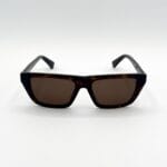 Occhiale da sole Bottega Veneta dalla forma rettangolare, montatura in acetato, colore havana, lenti marroni