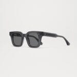 Occhiale da sole Bust Out dalla forma squadrata con doppio ponte, montatura in acetato, colore nero opaco, cerniere argento, lenti grigie sfumate.