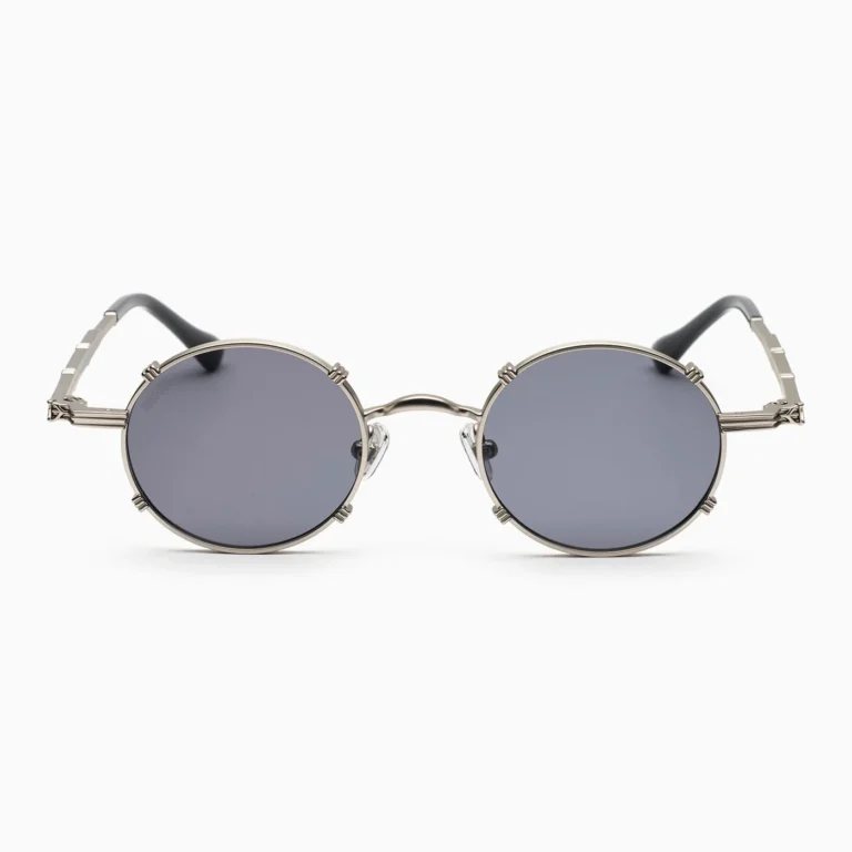 Occhiale da sole Bust Out dalla forma rotonda, montatura in metallo, colore argenti, lenti grigie.