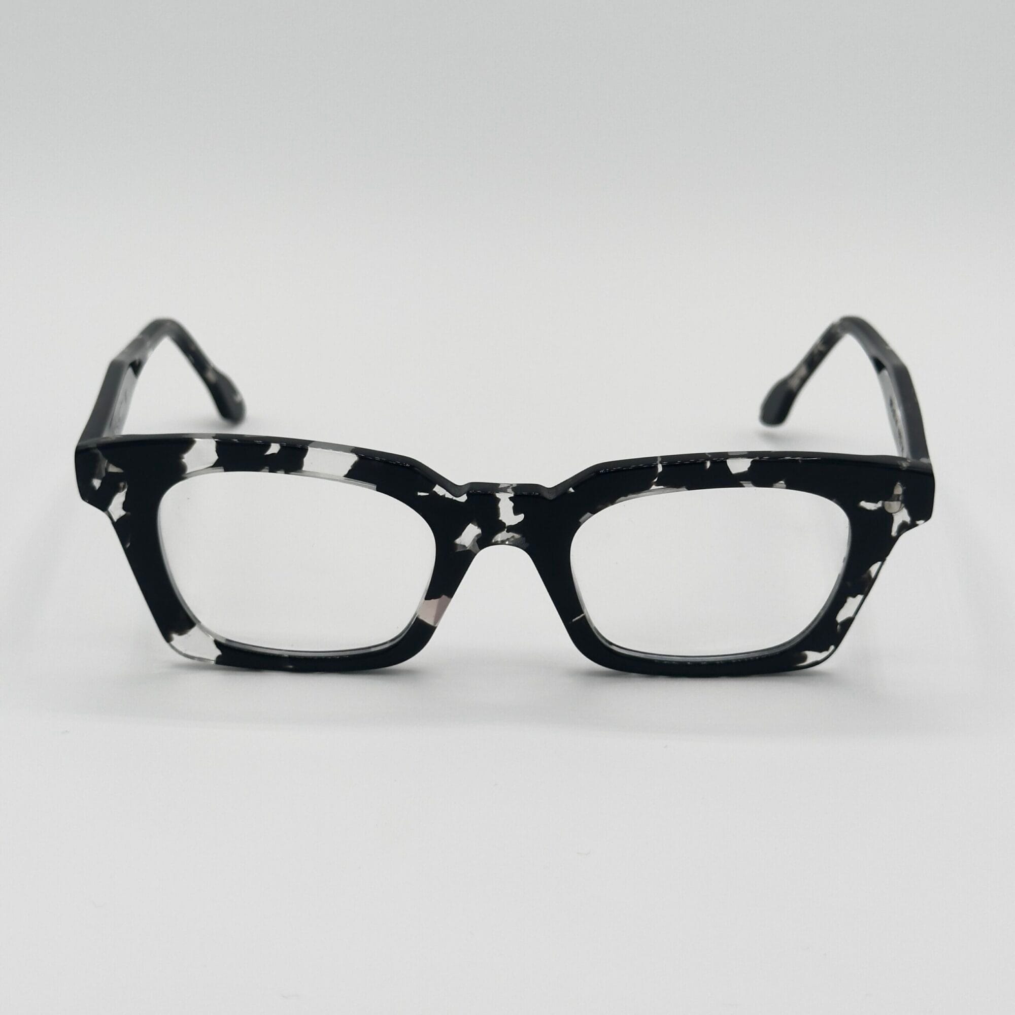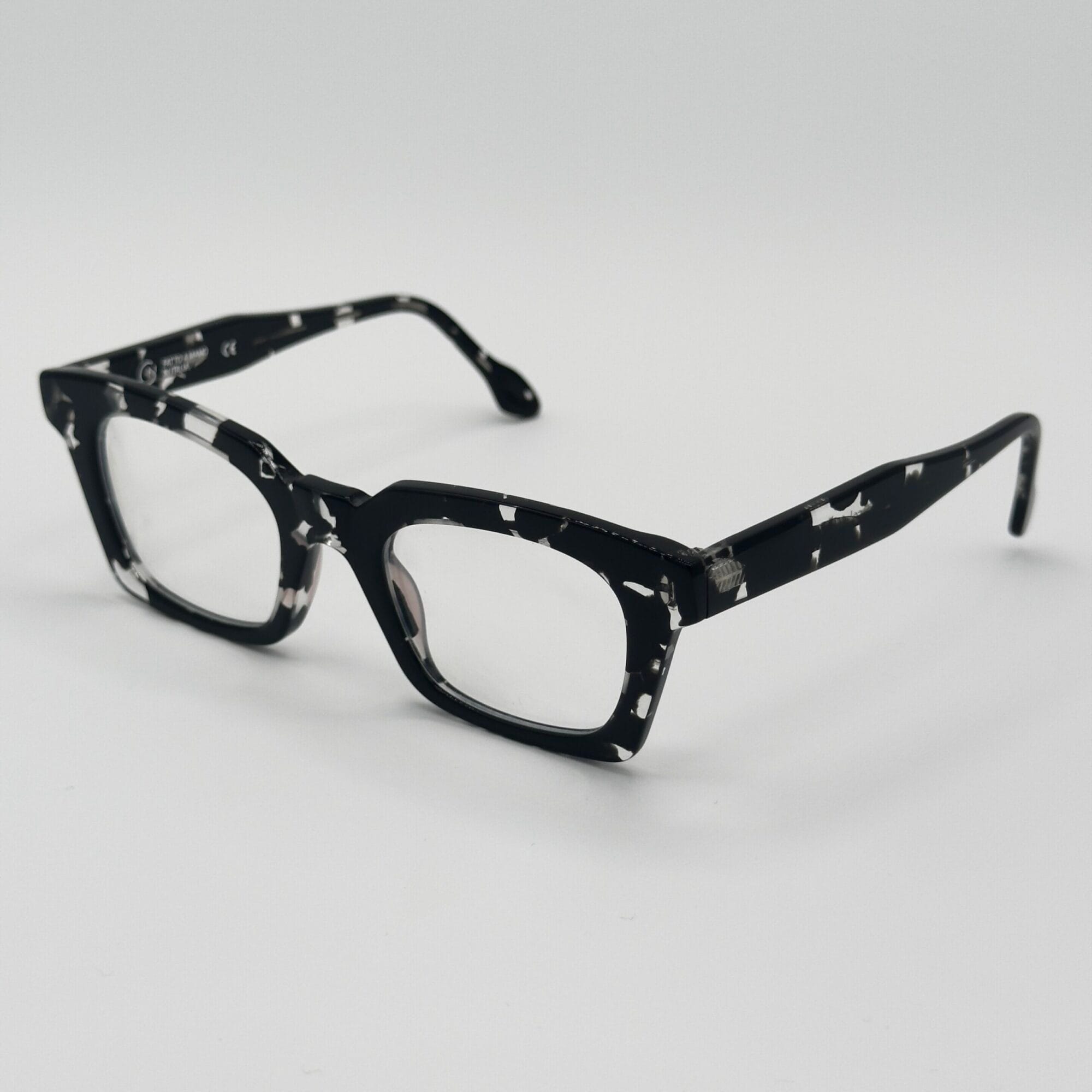 Occhiale da vista Giorgio Nannini dalla forma rettangolare, montatura in acetato, colore nero-trasparente, anima delle aste argento
